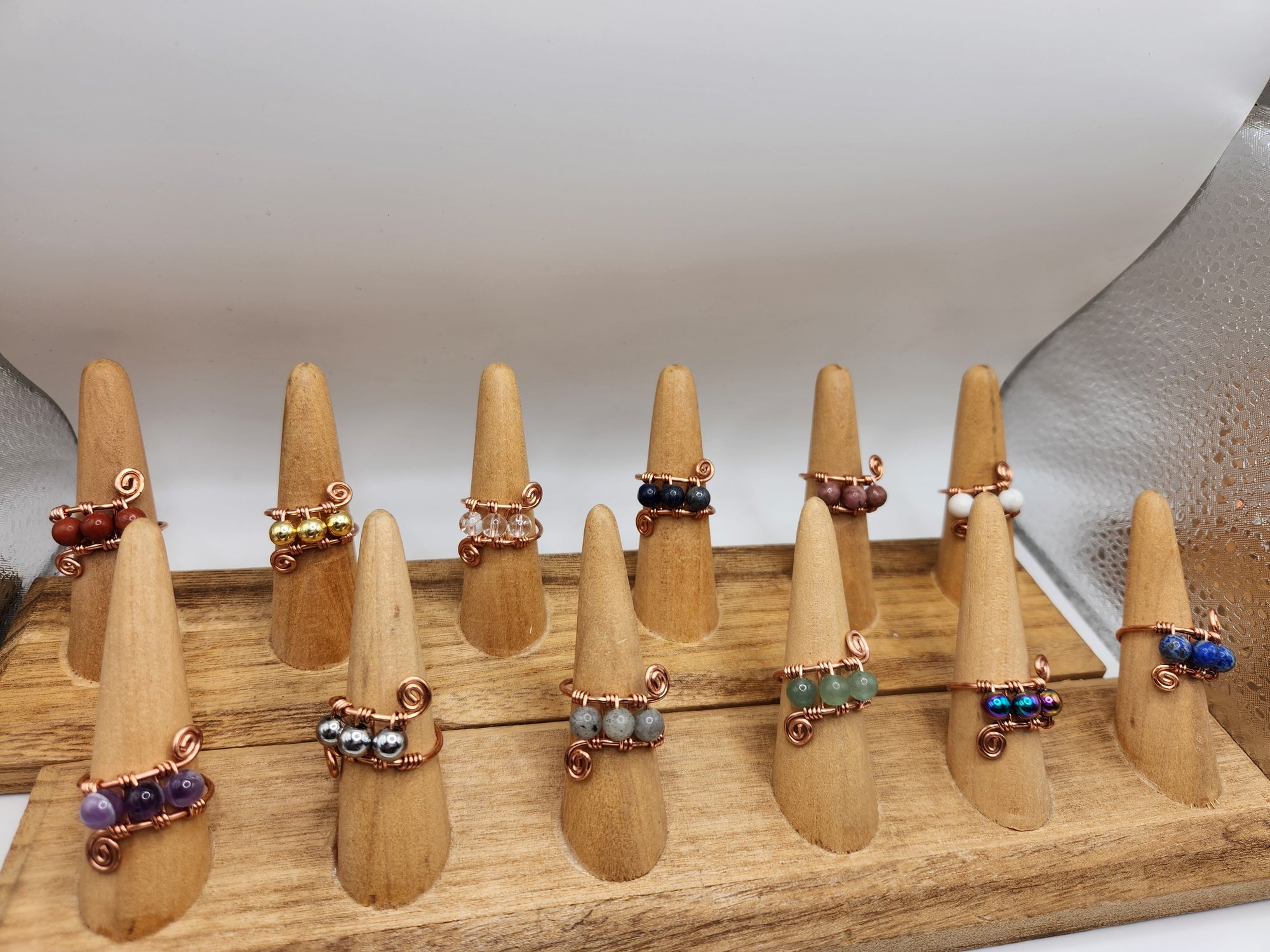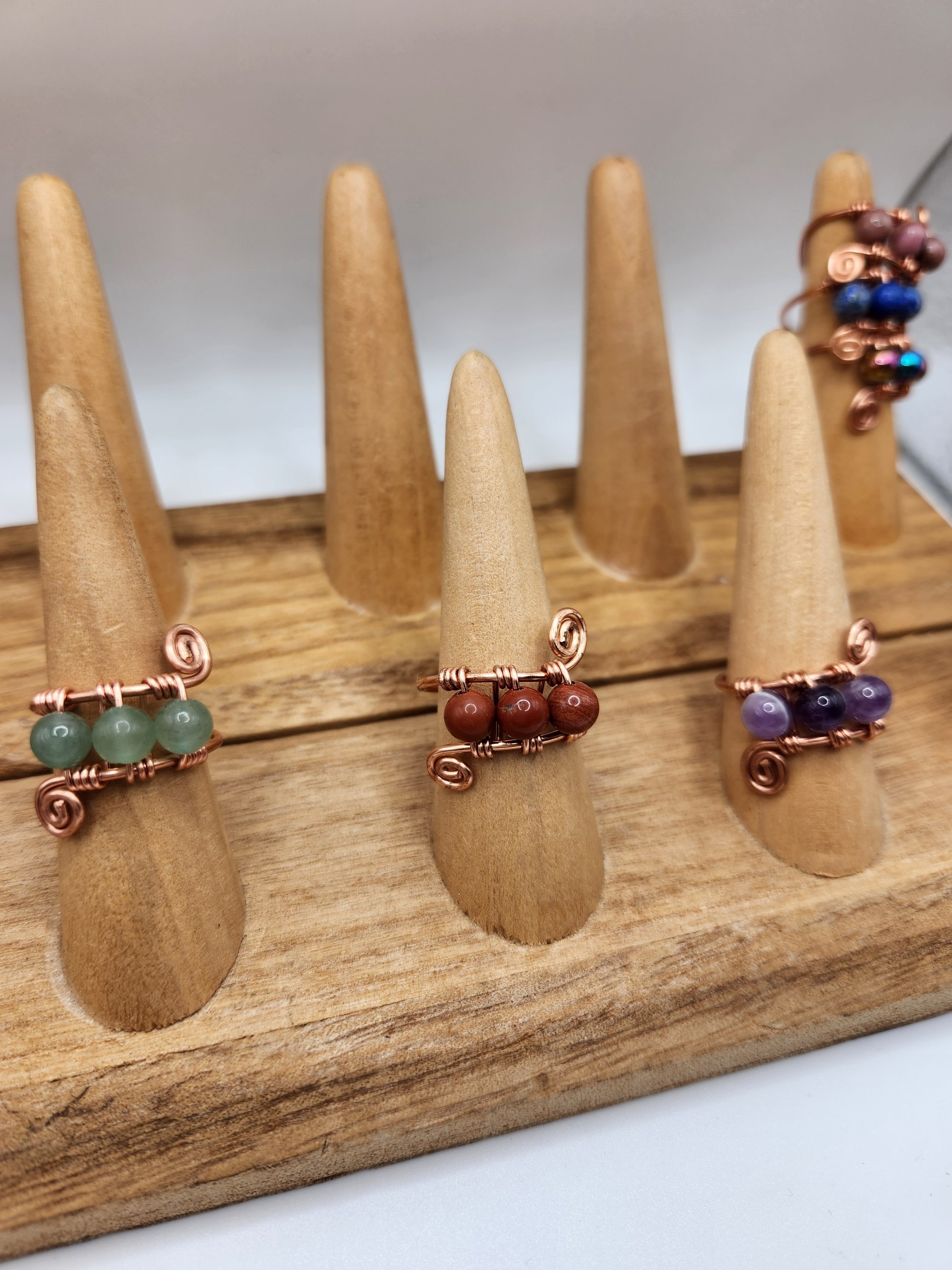 Beaded rings, adjustable copper band size 5-9